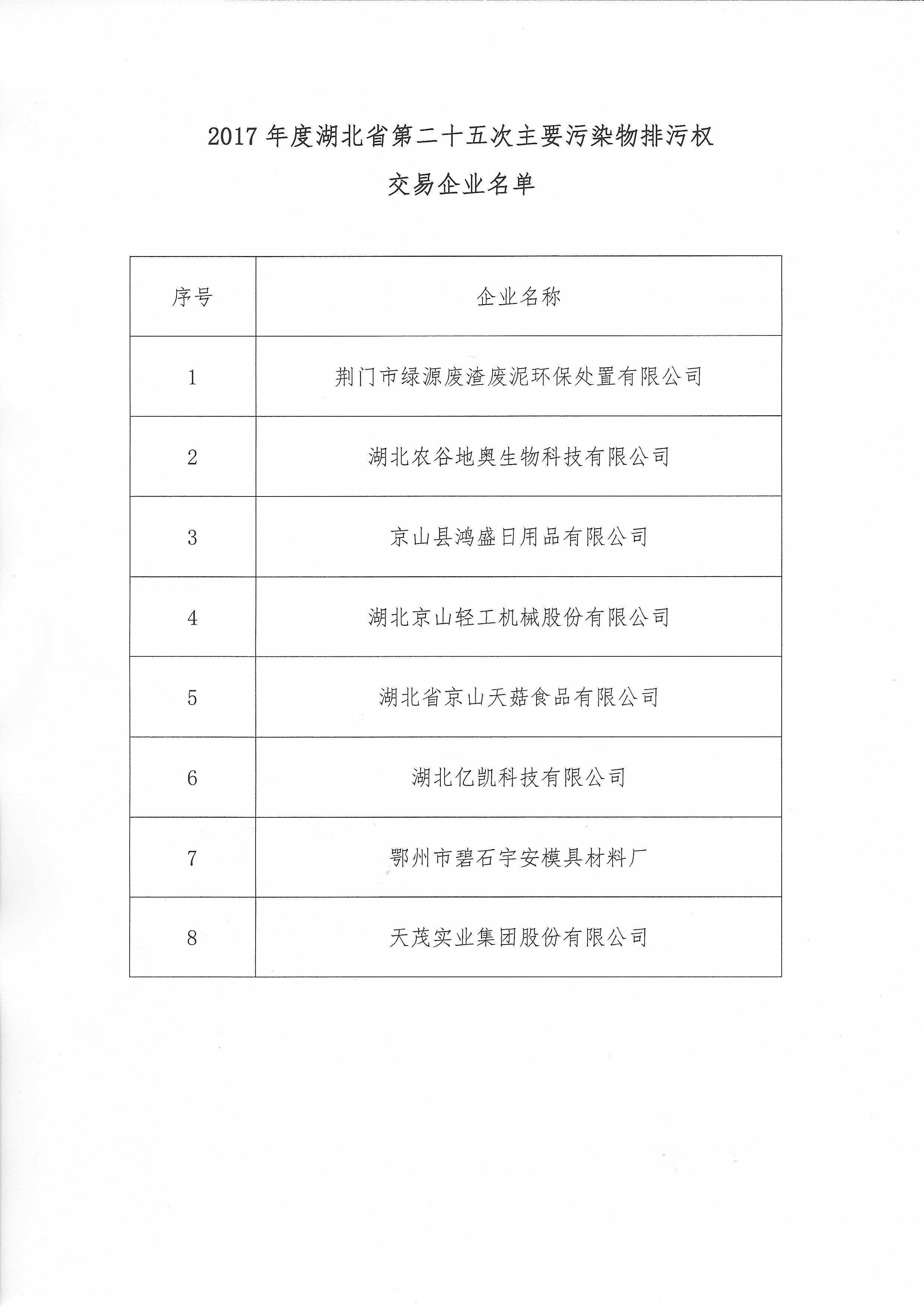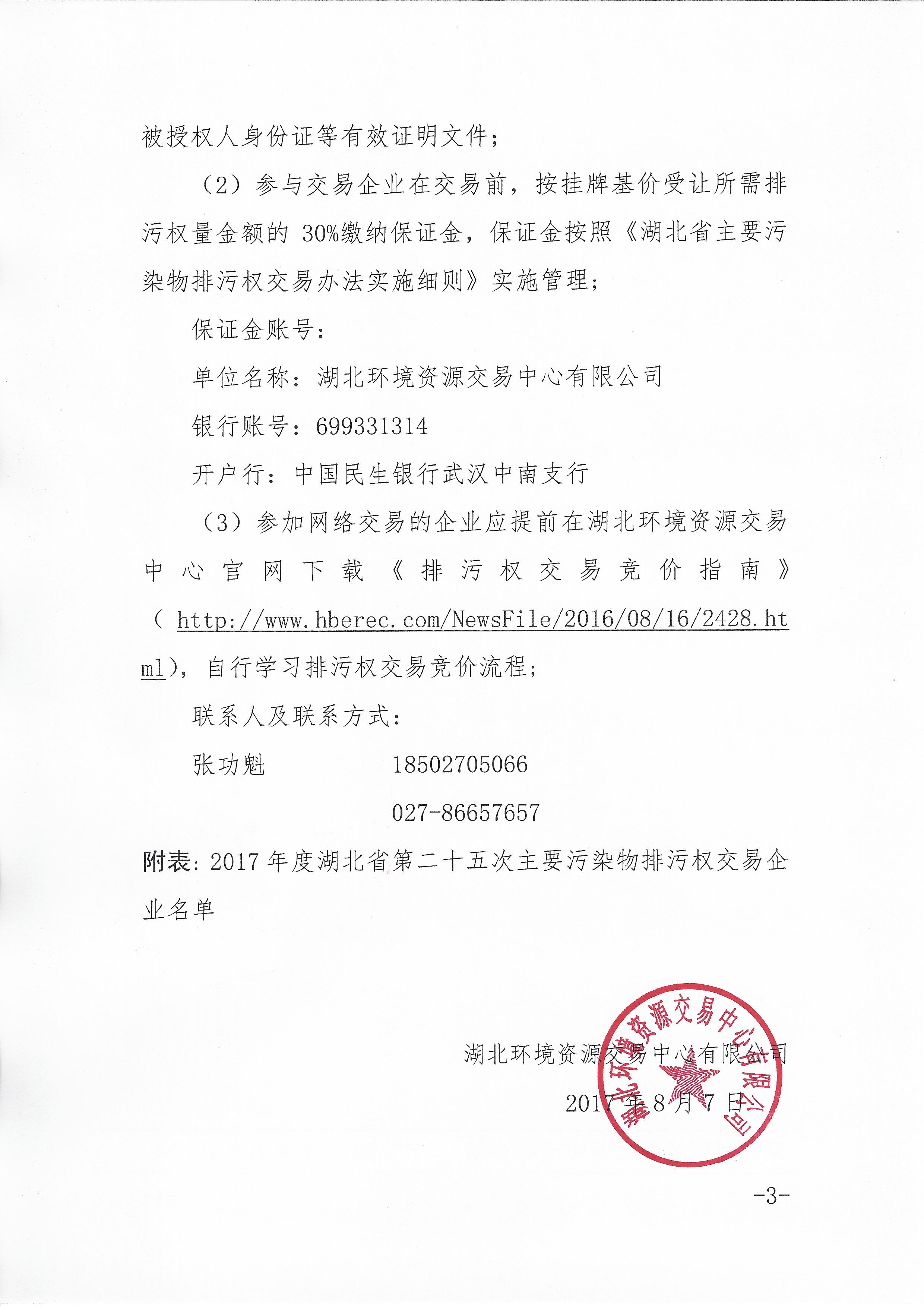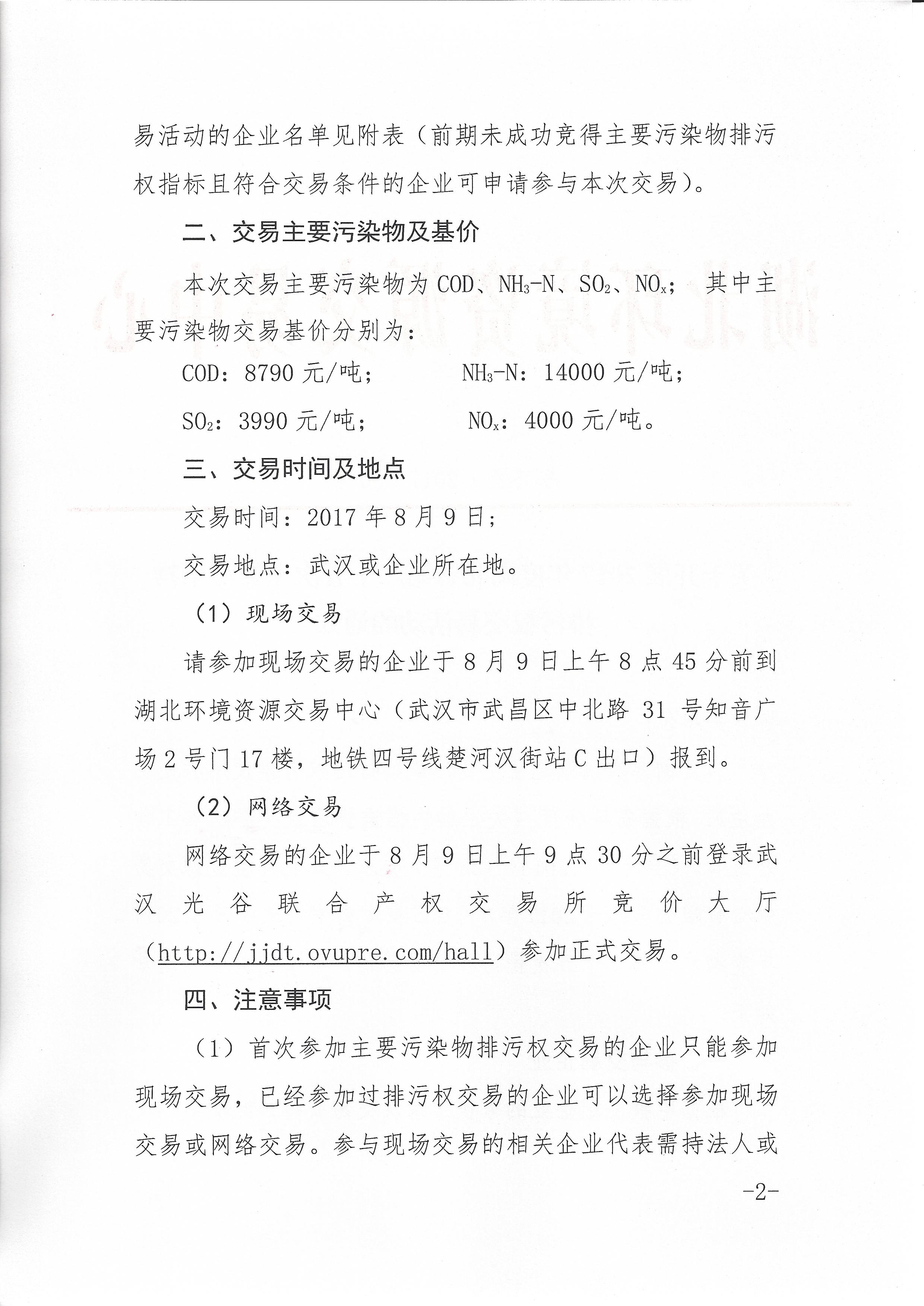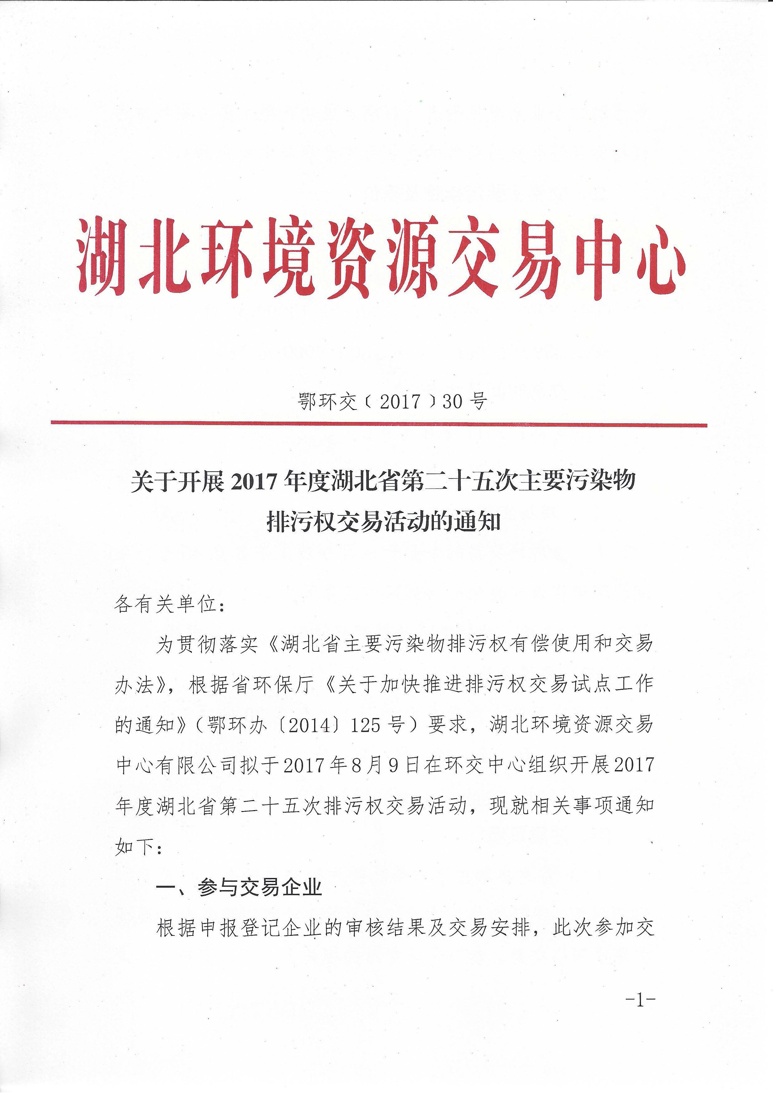 关于开展2017年度湖北省第二十五次主要污染物排污权交易活动的通知