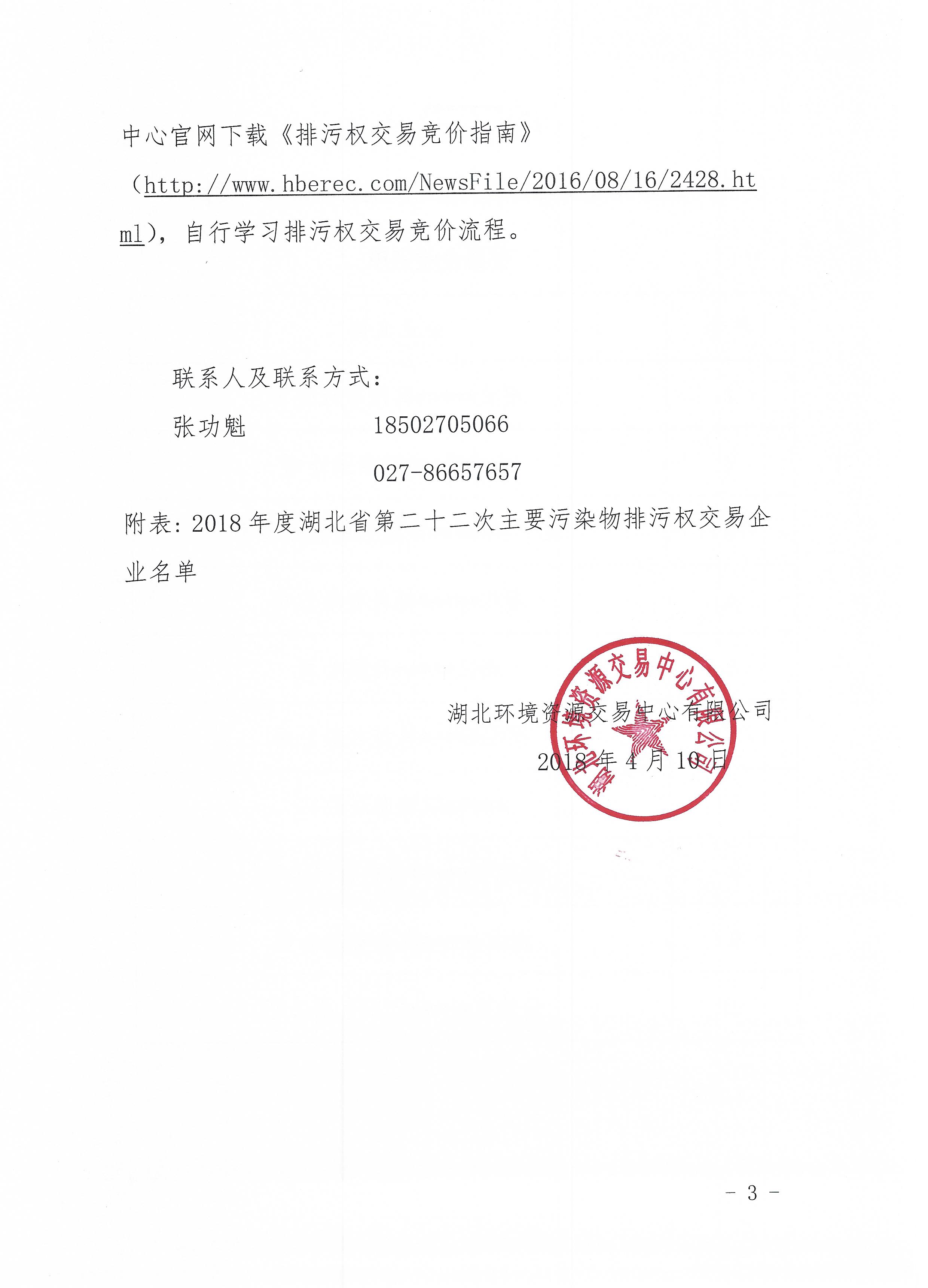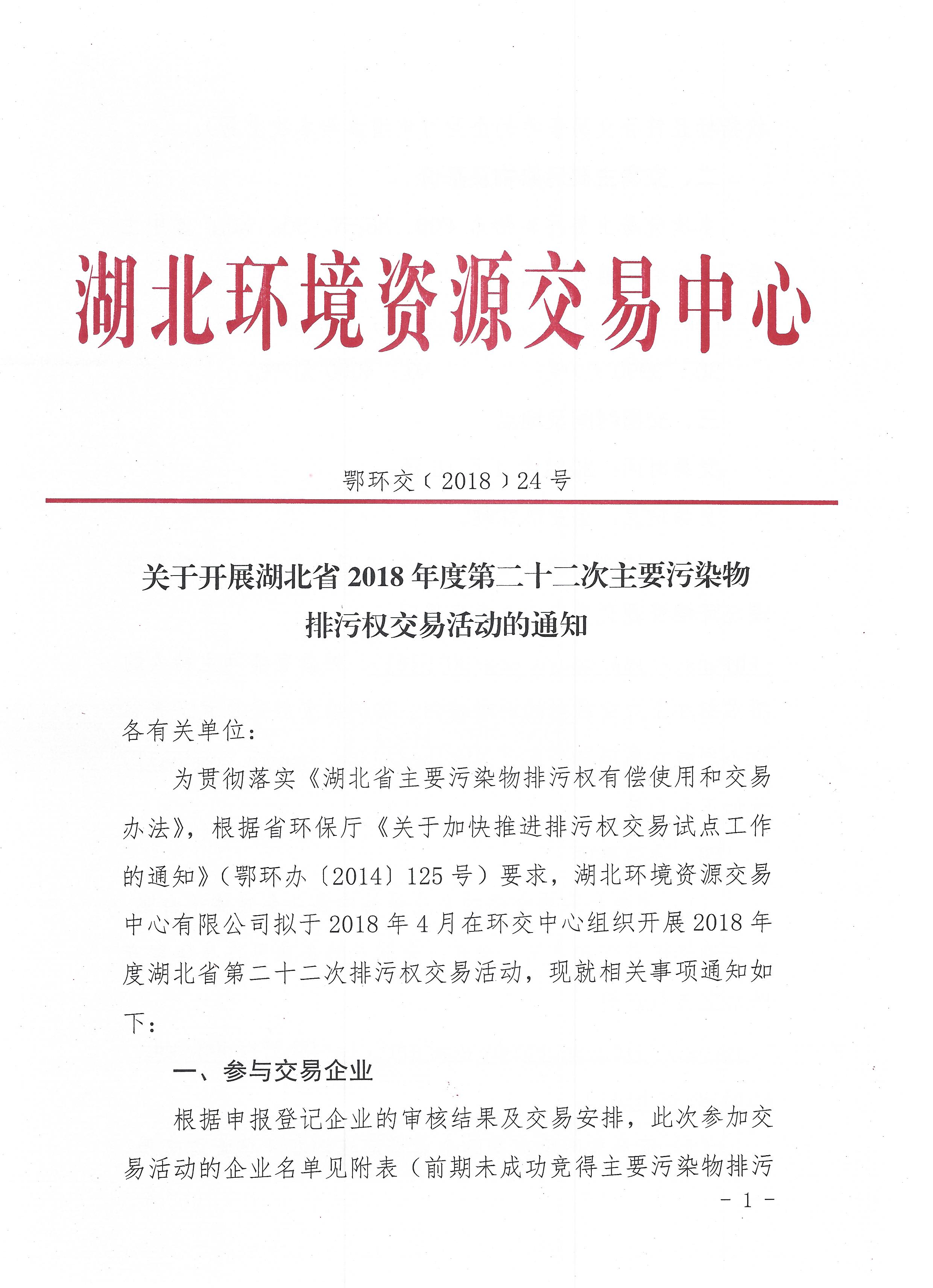 关于湖北省2018年度第二十二次主要污染物排污权交易活动的通知