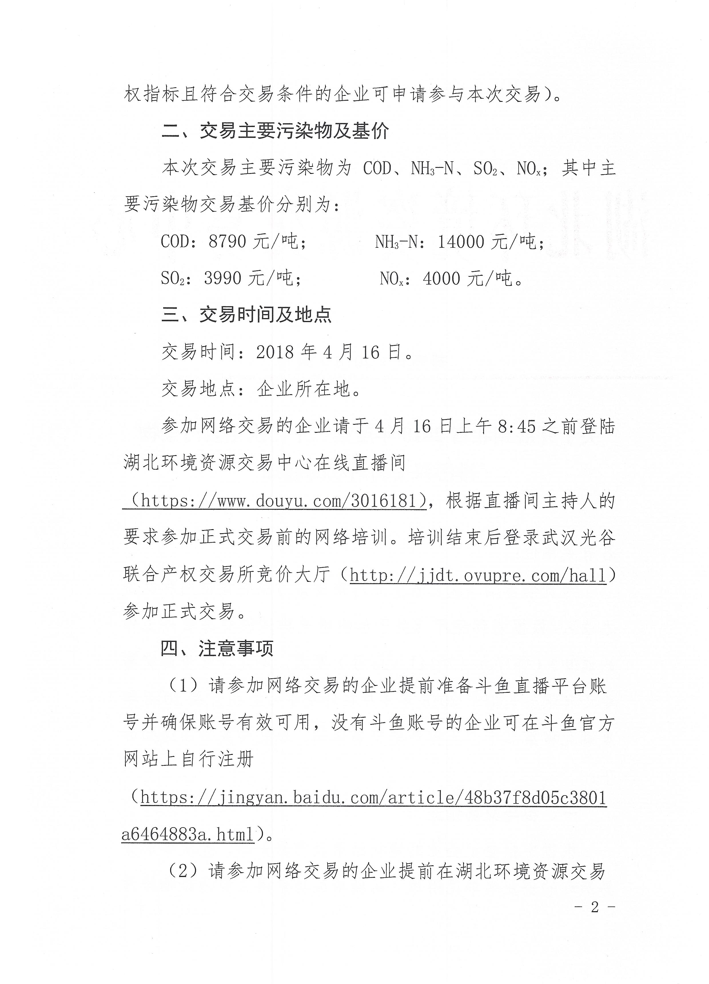 关于开展湖北省2018年度第六十次主要污染物排污权交易活动的通知