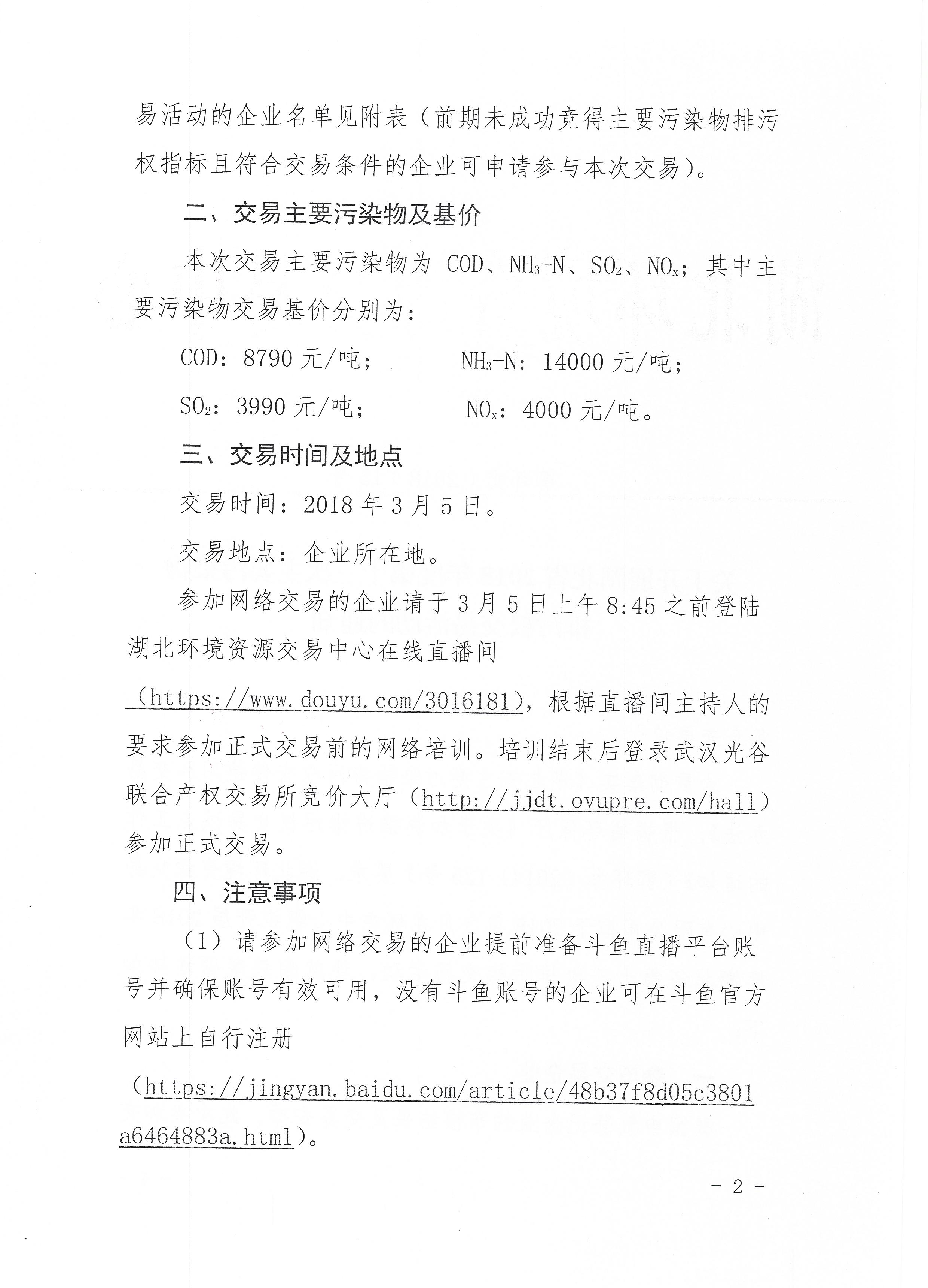 关于开展湖北省2018年度第六十次主要污染物排污权交易活动的通知