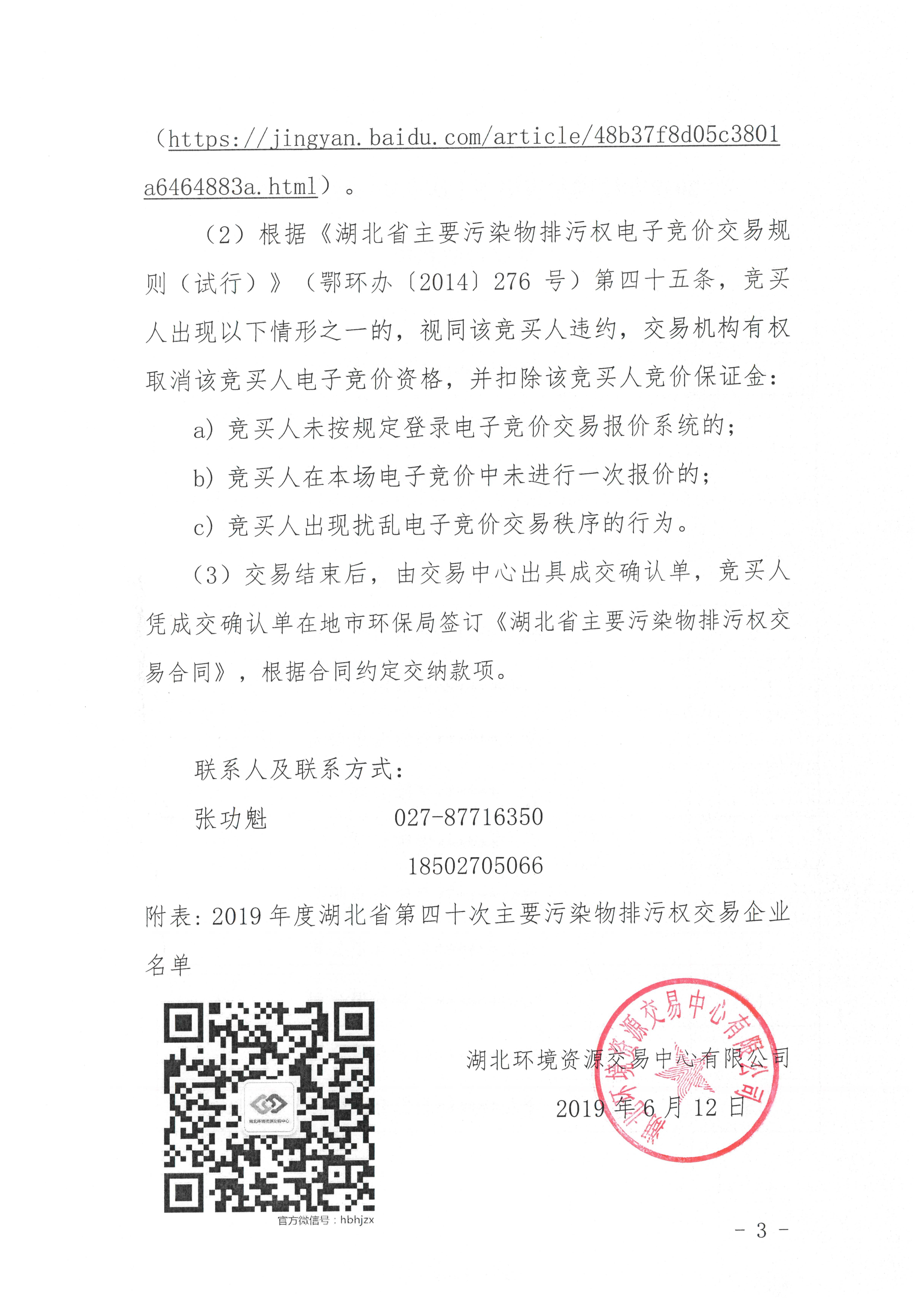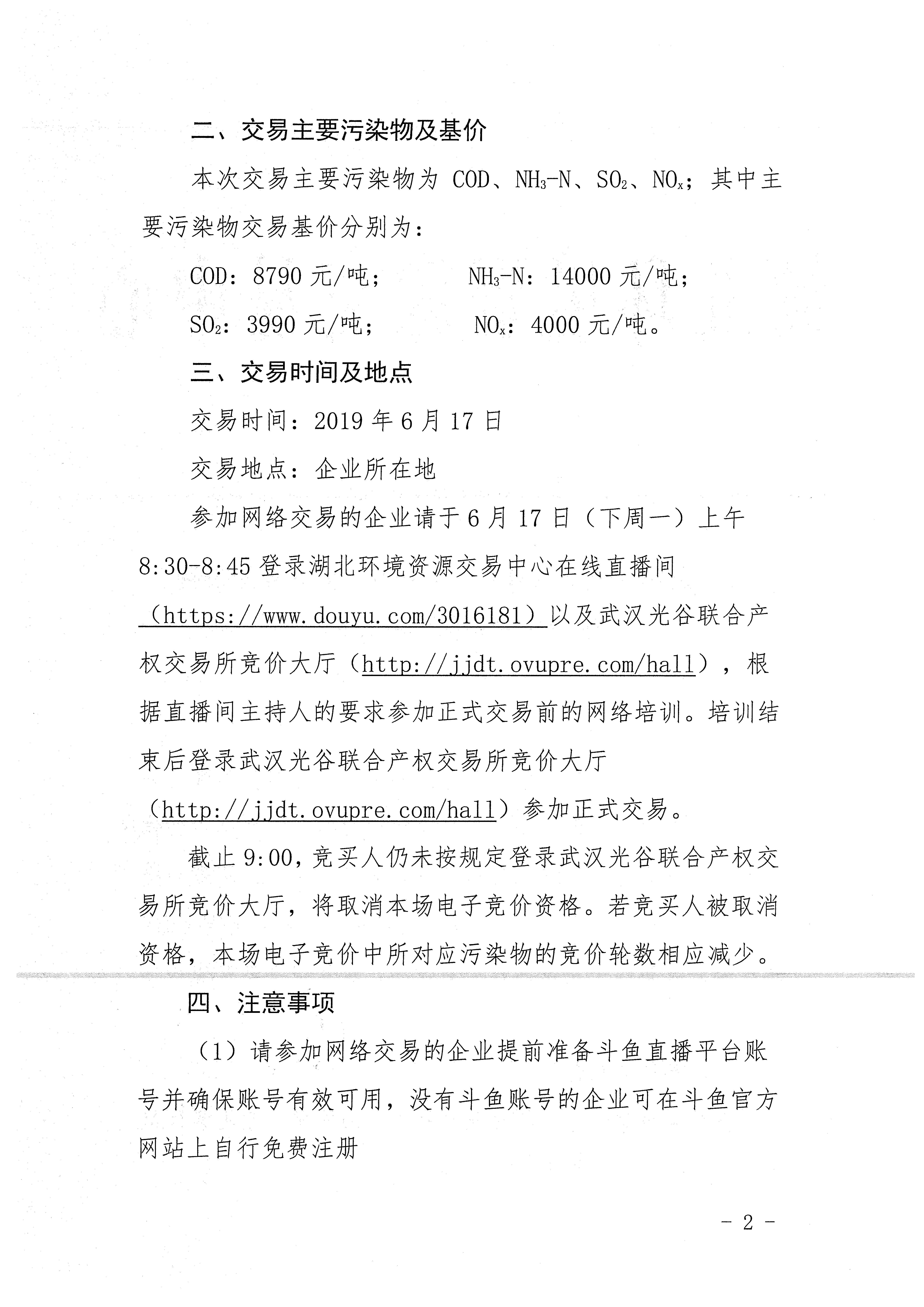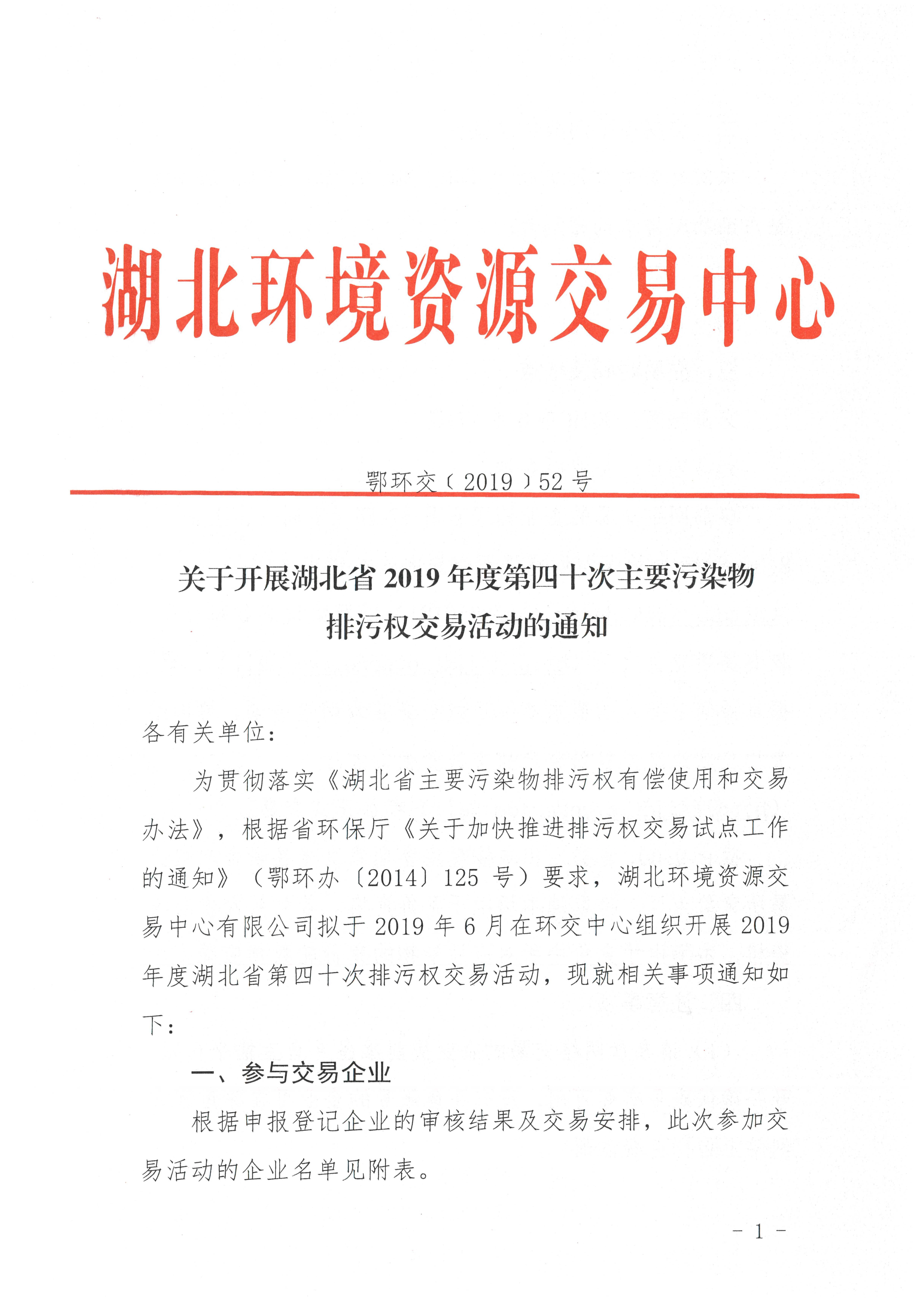 关于开展湖北省2019年度第四十次主要污染物排污权交易活动的通知