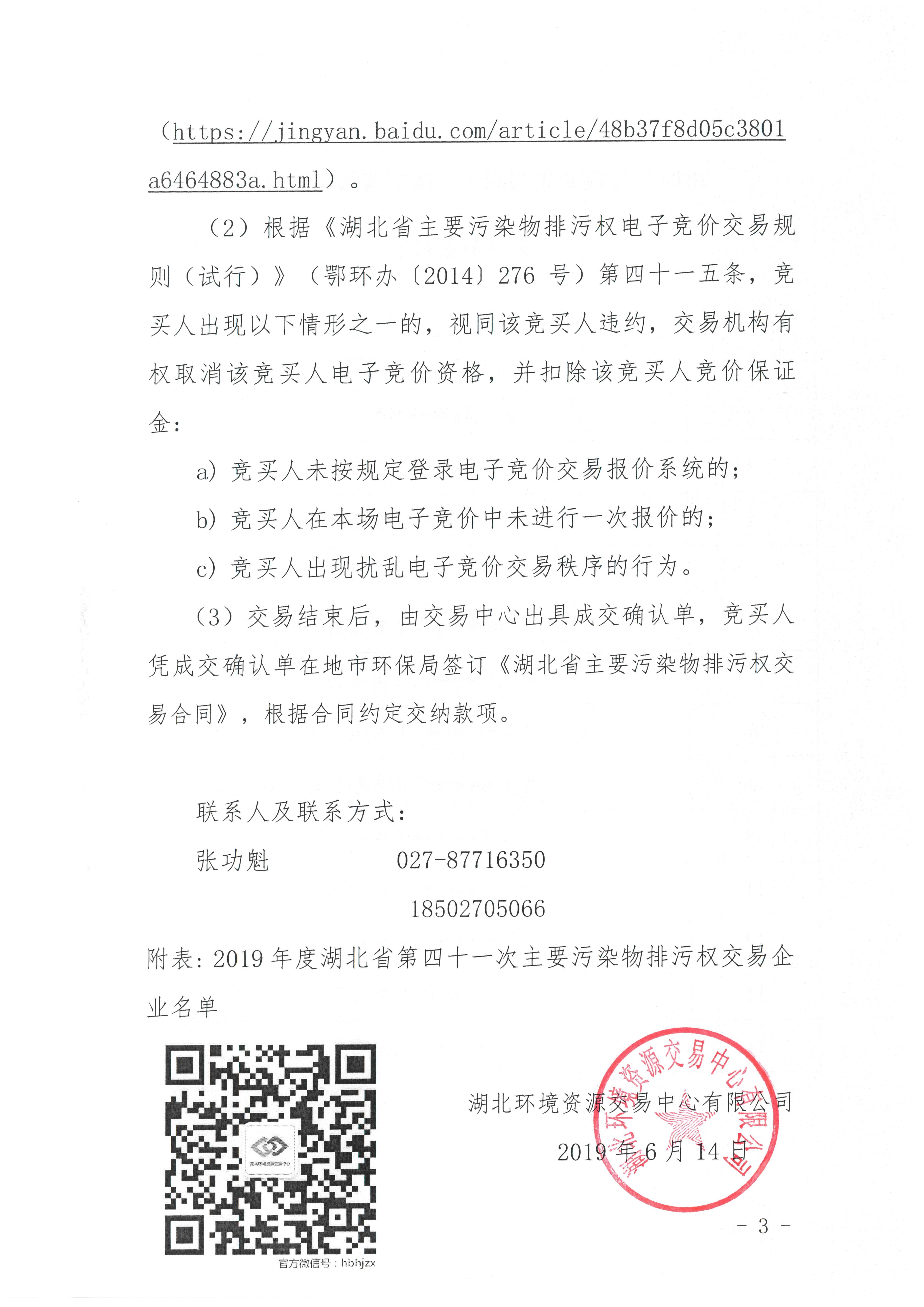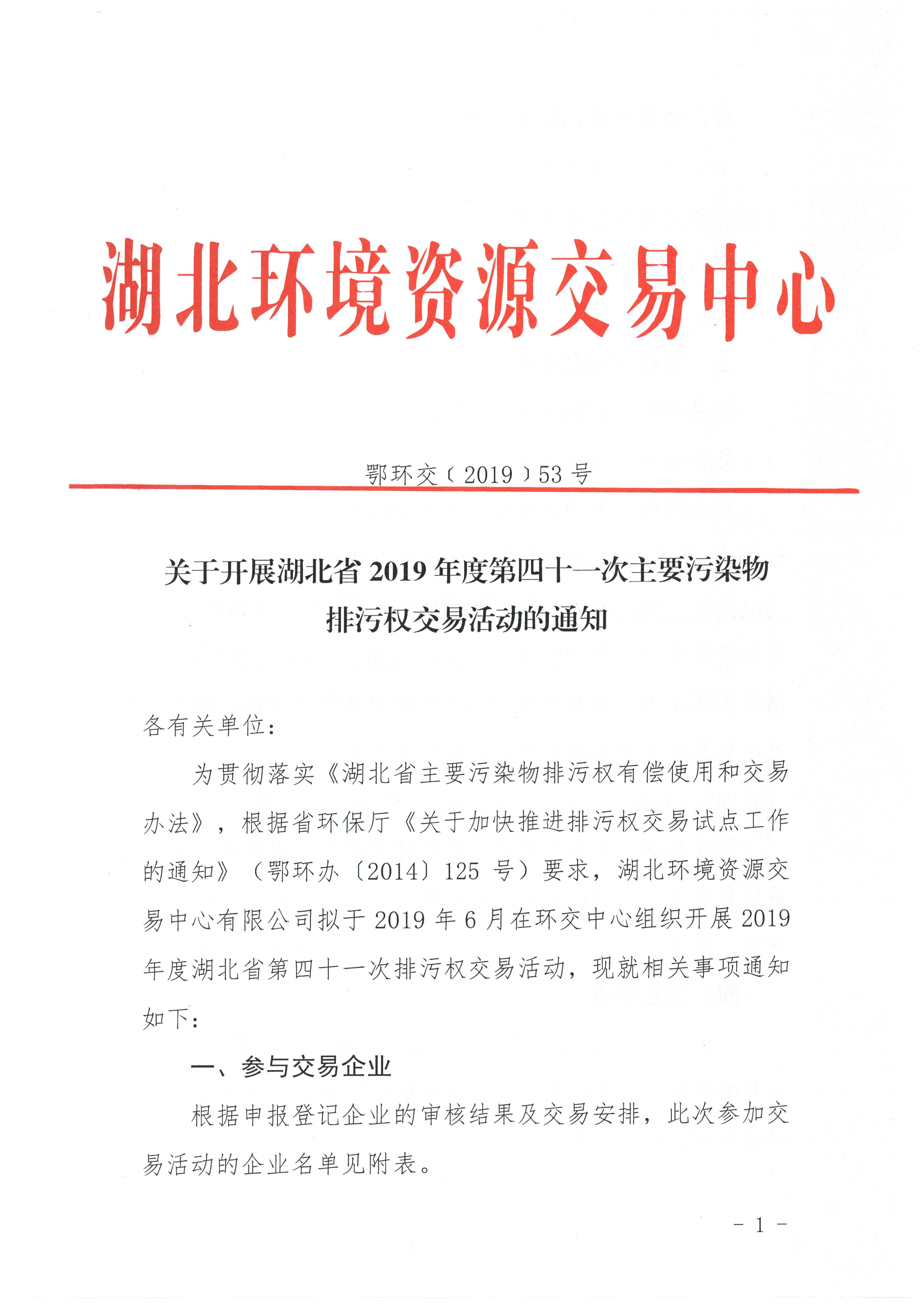 关于开展湖北省2019年度第四十一次主要污染物排污权交易活动的通知