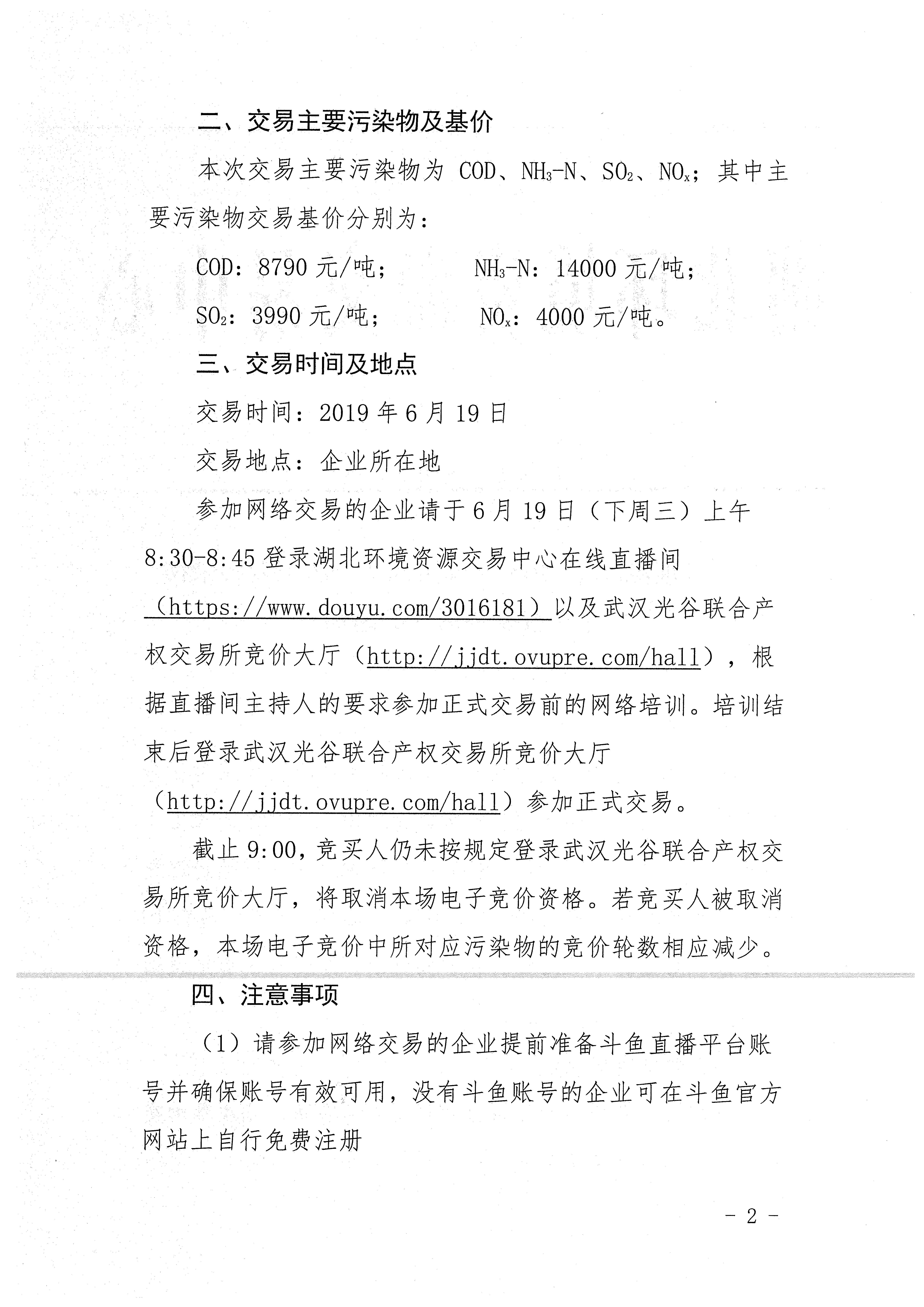 关于开展湖北省2019年度第四十二次主要污染物排污权交易活动的通知
