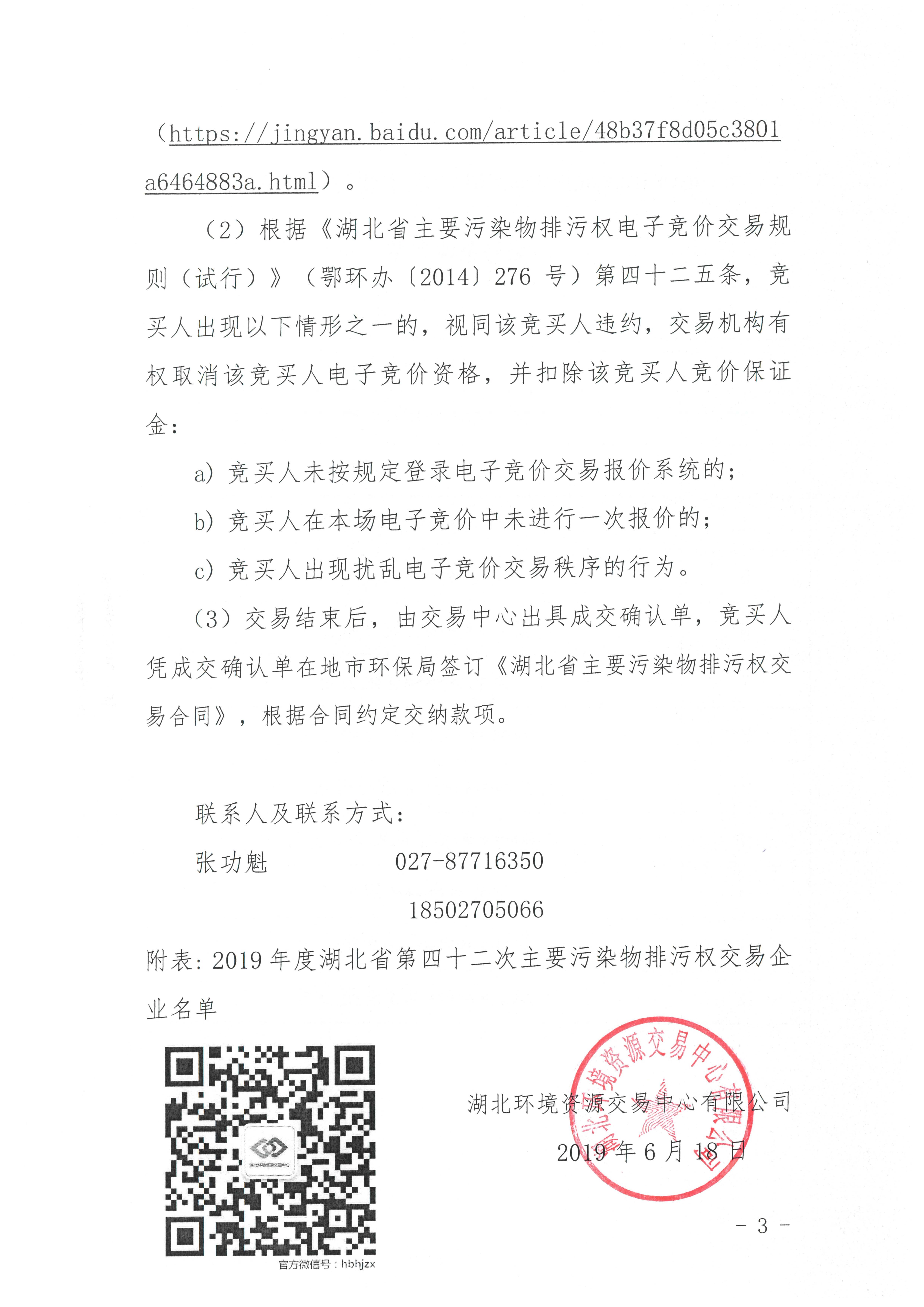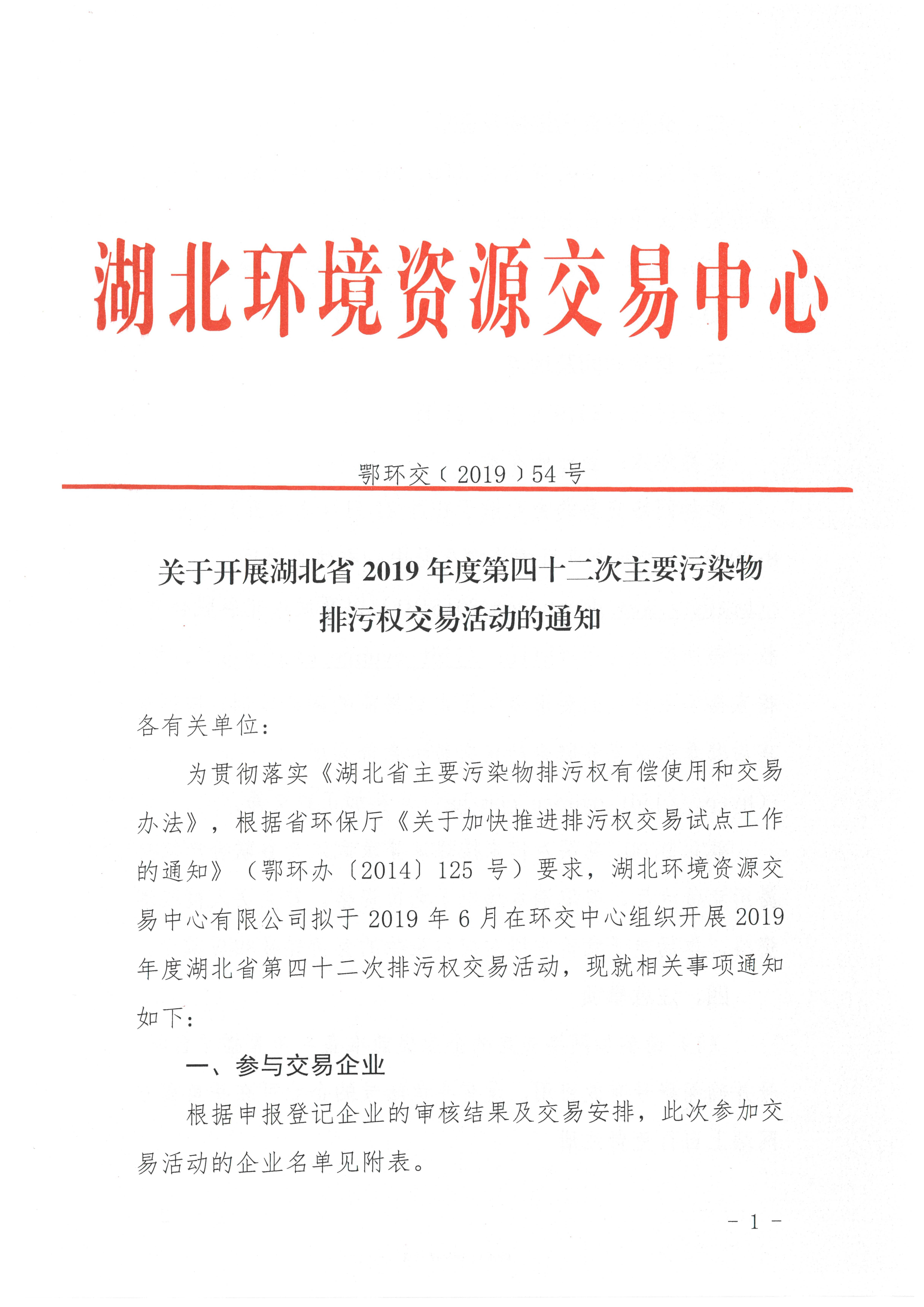 关于开展湖北省2019年度第四十二次主要污染物排污权交易活动的通知