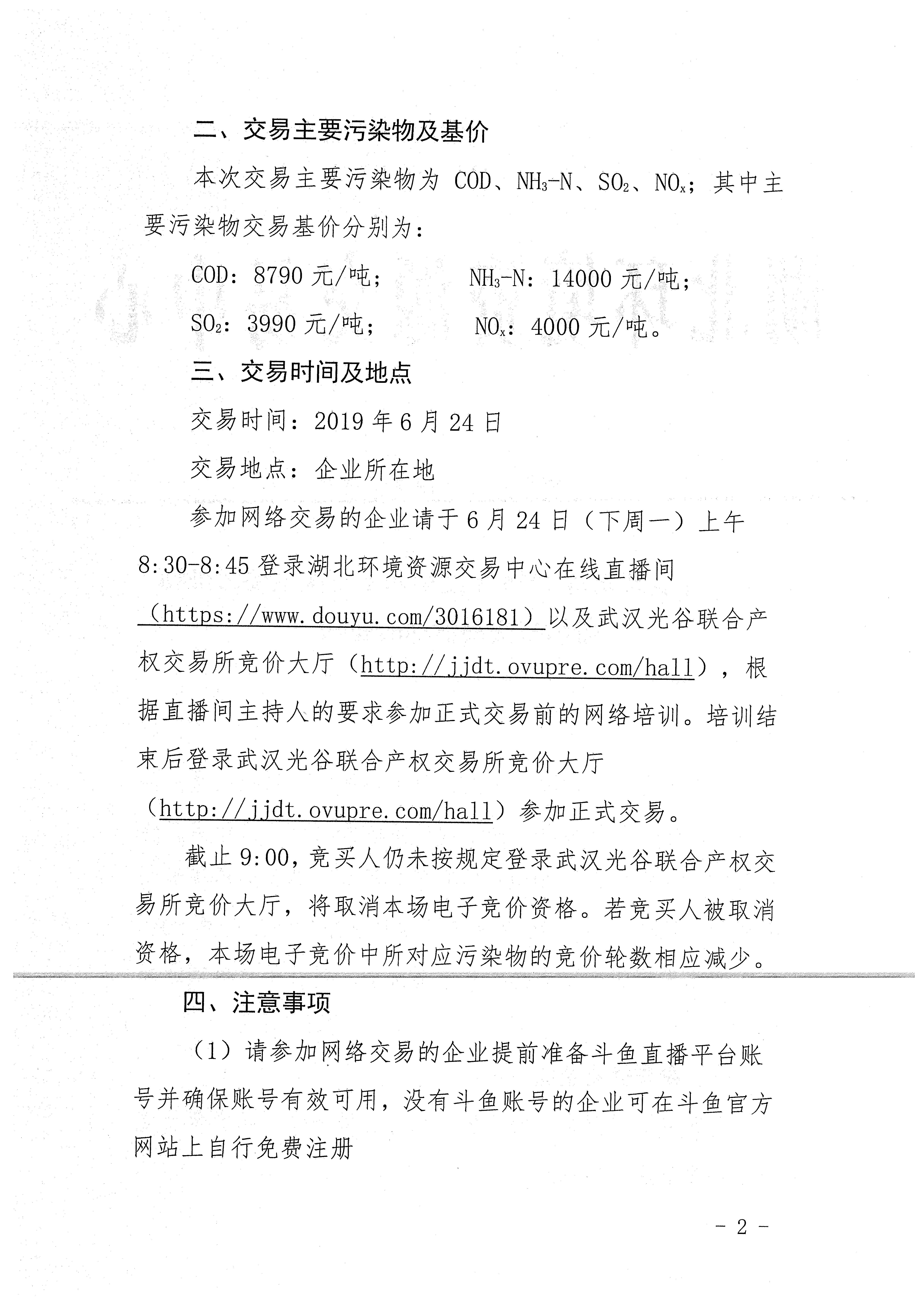 关于开展湖北省2019年度第四十二次主要污染物排污权交易活动的通知